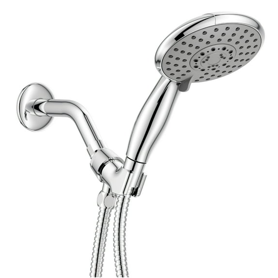 | Finish | ChromeAna Bath High-Pressure Anti-Clog 5-Inch 5- Spray Modes Handheld Shower Head System 60-Inch Stainless Steel Shower Hose (Chrome) | PolishedVeken Wide Rain Shower Head with Handheld, High Pressure Rainfall Showerhead Combo with Arm for Bathroom Accessories, Home Decor, Detachable Dual Shower with Multi Modes Handheld Spray, Silver Chrome | PlatingAonhom Filtered Shower Head with Handheld, High Pressure 10 Spray Mode Chrome Showerhead with Magnetic Bracket, Extra-long 70 inch Stainless Steel Hose | -Shower Head, Rain Shower Head with Handheld Spray Combo, 8 Inch Adjustable High Pressure Rainfall Shower Head, Dual Showerhead Set with Extension Arm and 60 Inch Long Shower Hose (Silver) | SilverKESTE High Pressure Shower Head, 2 in 1 Rainfall Shower Heads with 9 Mode Adjustable handheld Showerhead, Dual Showerhead with Anti-Clog Nozzles and 60” Hose, Silver |