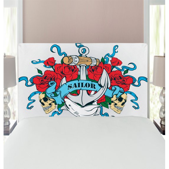 Anchor Headboard, Anchor Head Bones Skeleton Roses Bouquet Dolphin Wildlife Danger Traveling, Upholstered Decorative Metal Bed Headboard with Memory Foam, Twin Size, Red Blue Sand Brown, by AmbesonneAnchor Headboard Head Bones Skeleton Roses Bouquet Dolphin Wildlife Danger Traveling Upholstered Decorative Metal Bed Headboard Memory Foam Twin SizeAnchor Headboard Head Bones Skeleton Roses Bouquet Dolphin Wildlife Danger Traveling Upholstered Decorative Metal Bed Headboard Memory Foam Full Size