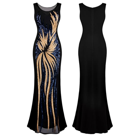 Hero image 0 of Angel-fashions Mother Dress For Wedding Women's Sheer Round Neck Contrast Gold Blue Sequin Black Evening Gown X-Large, 0 of 6