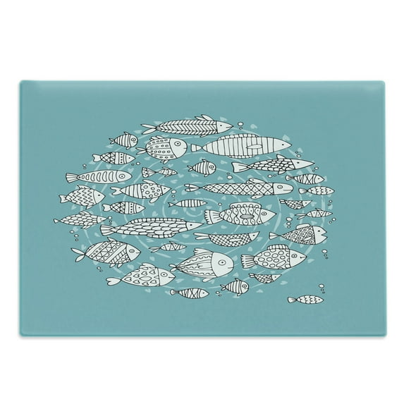 Hero image 0 of Animal Cutting Board, Fish Community Swimming in the Ocean Playroom Cartoon, Decorative Tempered Glass Cutting and Serving Board, Large Size, Pale Blue White, by Ambesonne, 0 of 1