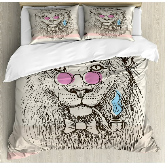 Animal Duvet Cover Set, Magestic Lion Head Hipster Style Glasses Sketch Print Image, Decorative 3 Piece Bedding Set with 2 Pillow Shams, King Size, Pale Blue Pale Pink, by AmbesonneAnimal Duvet Cover Set Magestic Lion Head Hipster Style Glasses Sketch Print Image Decorative 3 Piece Bedding Set 2 Pillow Shams King Size Pale BlueAnimal Duvet Cover Set Magestic Lion Head Hipster Style Glasses Sketch Print Image Decorative 3 Piece Bedding Set 2 Pillow Shams Queen Size Pale BlueAmbesonne Animal Duvet Cover Sets Lion Head Hipster Style 2 Twin Pale Blue Pale PinkAmbesonne Animal Duvet Cover Sets Lion Head Hipster Style 2 Queen Pale Blue Pale PinkAmbesonne Animal Duvet Cover Sets Lion Head Hipster Style 2 King Pale Blue Pale PinkAnimal Duvet Cover Set Magestic Lion Head Hipster Style Glasses Sketch Print Image Decorative 2 Piece Bedding Set 1 Pillow Shams Twin Size Pale BlueAmbesonne Animal Duvet Cover Set Lion Head Hipster Style 2 Calking Pale Blue Pale PinkAnimal Duvet Cover Set Magestic Lion Head Hipster Style Glasses Sketch Print Image Decorative 3 Piece Bedding Set 2 Pillow Shams Calking Size Pale Bl