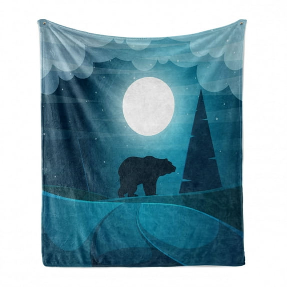 Hero image 0 of Animal Soft Flannel Fleece Blanket, Bear Silhouettes Illustration Night Mountain Pine Trees Computer Graphics Artwork, Cozy Plush for Indoor and Outdoor Use, 60" x 80", Petrol Blue, by Ambesonne, 0 of 5