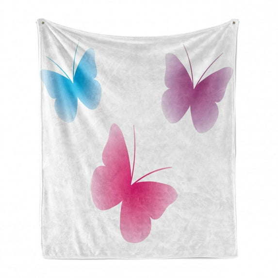 Hero image 0 of Animal Soft Flannel Fleece Throw Blanket, Butterfly Silhouettes Different Colors Wings Life Themed Image, Cozy Plush for Indoor and Outdoor Use, 60" x 80", Dried Rose Pink and Blue, by Ambesonne, 0 of 6
