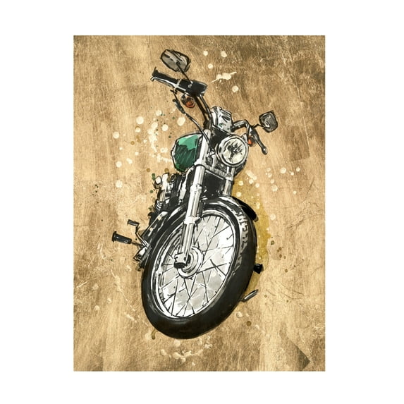 Artist: Annie WarrenSubject: TransportationStyle: Modern & ContemporaryProduct Type: Gallery-Wrapped Canvas Art This ready to hang, gallery-wrapped art piece features a painterly illustration of a motorcycle. Prominent Colors: Tan, Black, Grey, White, Brown World Art Group is a leading art publisher located in Richmond, Virginia. We have been producing wall decor for over 40 years. Formerly known as Old World Prints, World Art Group publishes a comprehensive line of imagery ranging from very Traditional to highly Contemporary. With weekly releases, covering every subject matter and every price range, we produce over 4,000 images a year. In addition to collaborating with artists from around the world, World Art Group has its own in-house design team Vision Studio. Giclee (jee-clay) is an advanced printmaking process for creating high quality fine art reproductions. The attainable excellence that Giclee printmaking affords makes the reproduction virtually indistinguishable from the original piece. The result is wide acceptance of Giclee by galleries, museums, and private collectors. Gallery wrap is a method of stretching an artist's canvas so that the canvas wraps around the sides and is secured a hidden, wooden frame. This method of stretching and preparing a canvas allows for a frameless presentation of the finished painting. Whether it's a contemporary, rustic, modern, or traditional style decor, Trademark Fine Art offers a variety of high-quality, carefully built wall art that will surely complement any style. We provide an abundance of art themes that range from fascinating abstracts to breathtaking landscapes. With an assortment of sizes and styles such as Framed, Matted Framed, Panel, Aluminum, Wood Canvas or other mediums, our art will certainly bring excitement to any area of your home. From the bedroom, to the living room, or even the office, Trademark Fine Art makes professionally handcrafted, ready to hang wall decor that will be admired for years to come!IMPORTANT: Avoid buying counterfeit products and transacting with unauthorized sellers. Look for our logo on the packaging for every one of our products. Trademark Fine Art is committed to providing the consumer with the absolute best price and value on our entire line of products, which we ensure by applying a rigorous Quality Control process. Trademark Fine Art is a registered trademark protected by . Trademark law and will be vigorously defended.