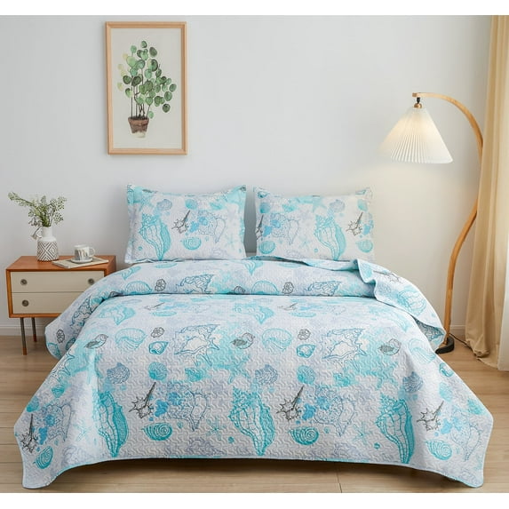 2764.4 out of 5 Stars. 276 reviewsSave withShipping, arrives tomorrowSmuge 3 Pcs Ocean Quilts Queen/Full Size Conch Seashell Starfish Bedding Set,Soft Microfiber Bedspreads Coverlet, 1 Quilt & 2 Pillow Shams (Cyan) $32.99 Was $44.99