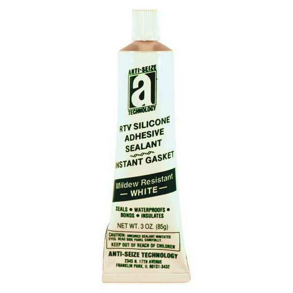 RTV Silicone Sealant, Color White, Container Size 3 oz, Container Type Tube, Full Cure Time 1 day, Cure Type Room Temperature, Maximum Operating Temperature 450 Degrees F, Minimum Operating Temperature -75 Degrees F, Working Time 15 min, Product Form Paste, For Fluid Type Fuels, Oil, Solvents, For Material Type Ceramic, Metal, Glass, Plastic, Porcelain, Wood, Resistance Properties Moisture Resistant, Ozone Resistant, Standards FDA Reg. No. 21 CFR 177.2600, MIL-A-46106, NSF Approved, UL Listed