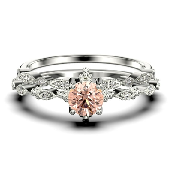Hero image 0 of Antique Dazzling Boho & hippie 1.75 Carat Round Cut Morganite And Diamond Moissanite Unique Engagement Ring, Wedding Ring in10k Solid White Gold, Affordable Gift For Woman, Bridal Set, Matching Band, 0 of 3