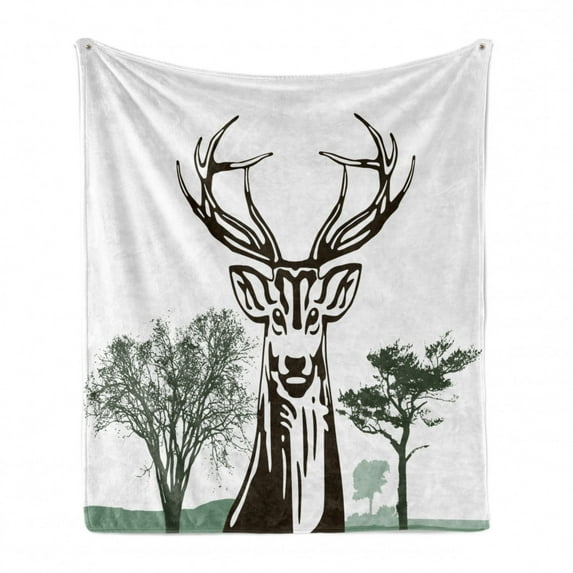 Hero image 0 of Antlers Soft Flannel Fleece Throw Blanket, Deer Moose Trees Silhouettes Outline of Village Mountain Fall Forest, Cozy Plush for Indoor and Outdoor Use, 50" x 60", Chocolate Green White, by Ambesonne, 0 of 5
