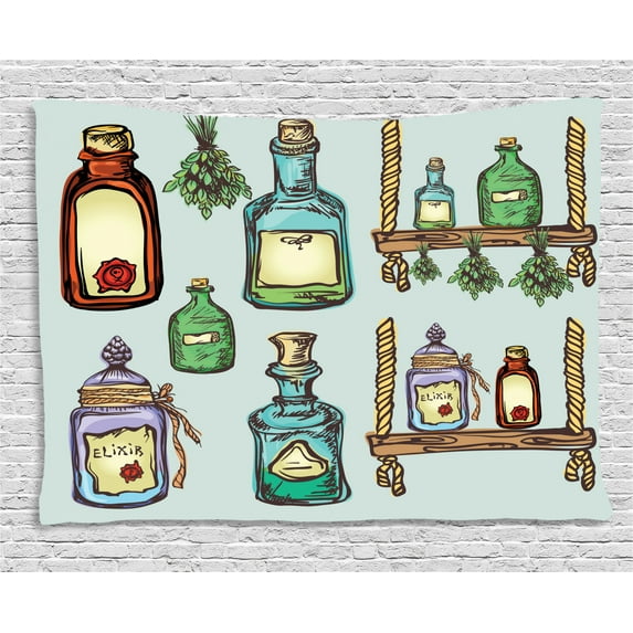 Apothecary Tapestry, Retro Alchemy Magic Craft Elixir Herbal Cure Chemists Halloween Recreation Theme, Wall Hanging for Bedroom Living Room Dorm Decor, 60W X 40L Inches, Multicolor, by Ambesonne