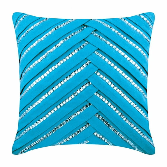 Hero image 0 of Aqua Blue Decorative Pillow Cover, Couch Cushion Cover 18 x 18 Suede Pleated Crystal Embroidered Pillow Cover, Blue Pillow Cover 18x18 inch (45x45 cm) Solid - Aqua Crystal Greetings, 0 of 3
