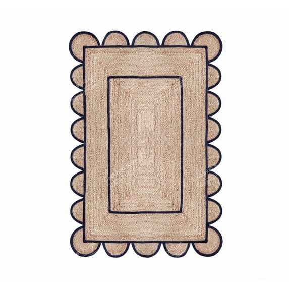 Area Rug Natural Jute Hand Braided Rug Navy Scalloped Runner