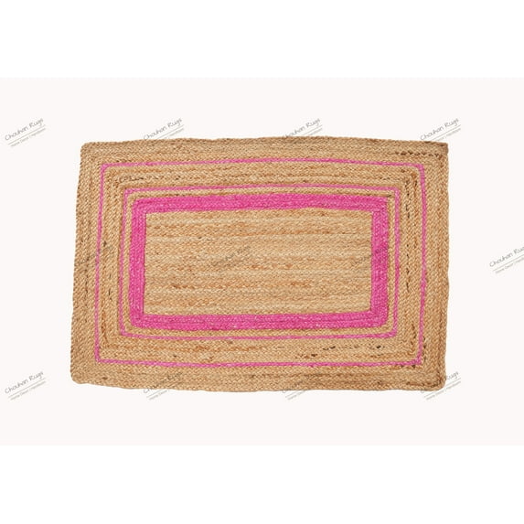 Hero image 0 of Area Rug Natural Jute Hand Braided Rug Pink Scalloped Rectangle Rug, 0 of 5