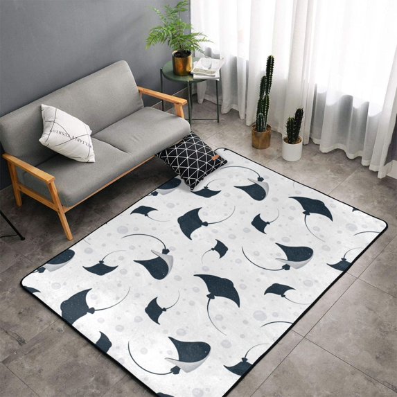 Hero image 0 of Area Rugs for Living Room Bedroom, 3x5 Soft Throw Rug Non-Slip Carpet, cool stingrays bubbles white Washable Indoor Floor Area Rug Bedroom Decor Aesthetic 60x39in, 0 of 7