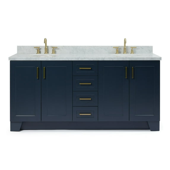 Hero image 0 of Ariel Taylor 73 In. Double Oval Sink Vanity With Carrara White Marble Countertop In Midnight Blue, 0 of 11