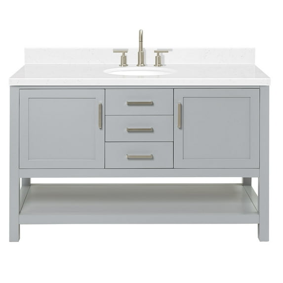 3 optionsAvailable in additional 3 options$1,53100current price $1,531.00Ariel Taylor 54 In. Oval Sink Bathroom Vanity With Carrara White Quartz Countertop 1.5 Edge In Grey