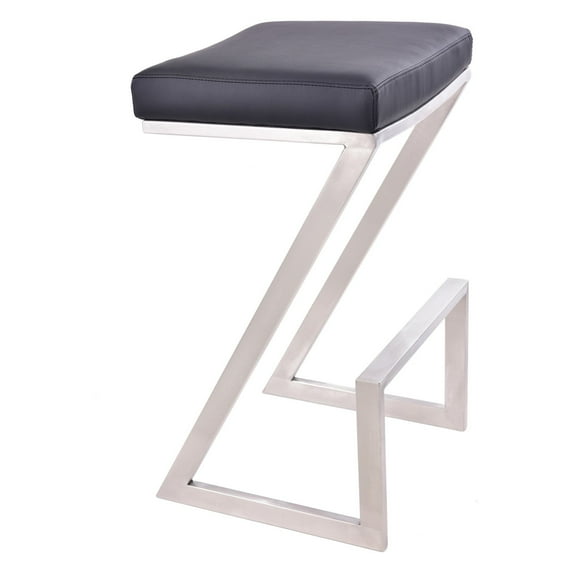 The Atlantis backless barstool may not be your typical barstool, but don't let its stature fool you; this barstool can, and will, make for an addition to your small kitchen or bar. Suited for a smaller or shorter space, the Atlantis will fit just where you need it to. The backless design allows you to save space vertically, allowing even possible storage underneath a bar when it's not being used. But don't think because of its size the Atlantis lacks on comfort; the Black Faux Leather not only looks great but offers a rather comfortable place to rest, and the brushed stainless steel finish everywhere else provides the proper structure and style for the small area in your home. This Armen Living Faux Leather barstool comes in White, Black, and Grey. Available in 26" counter height or 30" bar height. Width 17 Depth 17 Height 30
