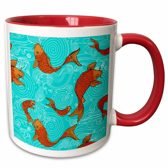 Hero image 0 of 3drose, Arts and Crafts Style Koi Fish in Water, 15oz Two-tone Red Mug, 0 of 6