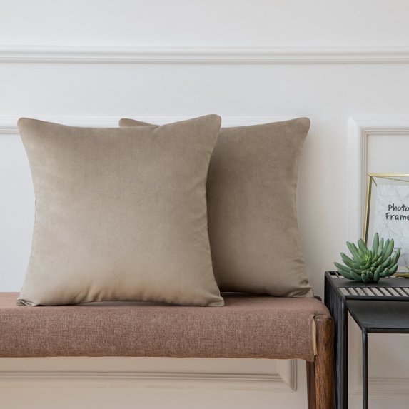 Ashler Soft Velvet Throw Pillow Cushion Home Decorative, Light brown, 22 x 22 inch, 2 Packs