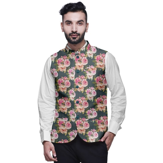 Hero image 0 of Atasi Floral Mens Casual Jackets Lightweight Partywear Indian Waistcoat Printed Nehru Jacket-Medium, 0 of 6