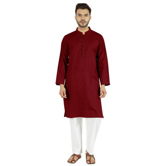 Atasi Indian Mens 2 Piece Kurta Pajama Set Henley Neck Casual Long Kurta