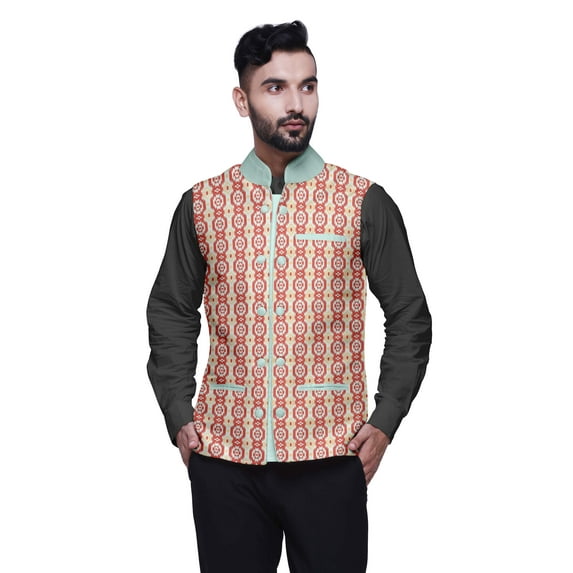 Hero image 0 of Atasi Mens Casual Jackets Lightweight Partywear Indian Waistcoat Printed Nehru Jacket-X-Large, 0 of 3