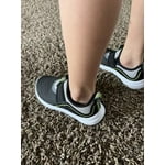 I love these shoes! My son is always in such a hurry to get outside that he doesn't even velcro his shoes half the time. The result is that he's constantly having one fly off. I love that these shoes are pulled on, no velcro or ties. They also stay on great! They are light and flexible and look great too! I have been impressed with Athletic Works shoes before, and these are no exception.