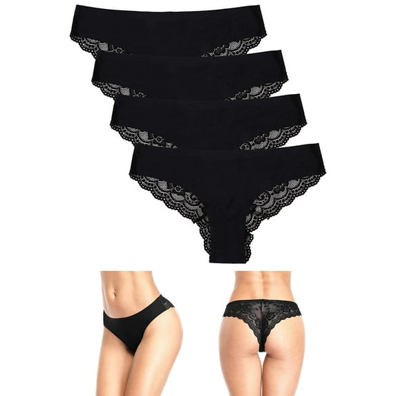 Attraco Anwell Women's Microfiber Lace Thongs Panties Underwear Pack of 4