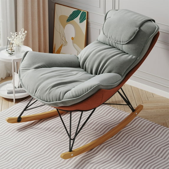 Hero image 0 of Aukfa Upholstered Rocking Chaise Lounge Chair for Home Office, Velvet, Gray, 0 of 10
