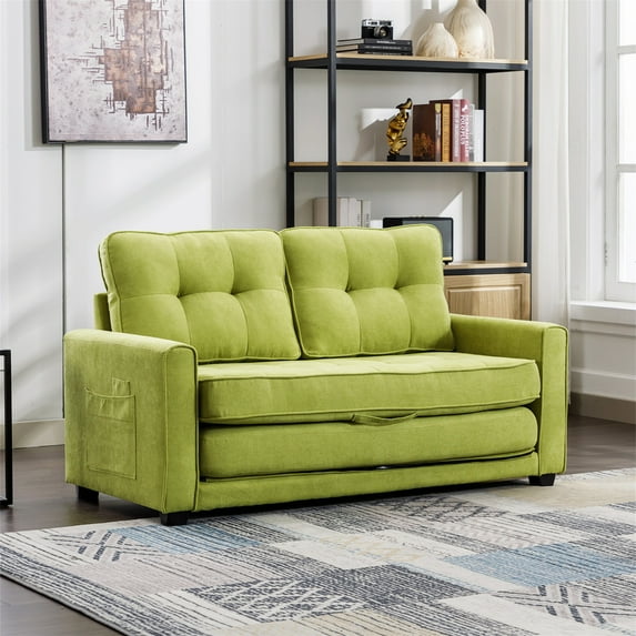 Aukfa Upholstered Sofa Bed for Living Room Office, Tufted Futon Loveseat with Pull-Out Bed, Green