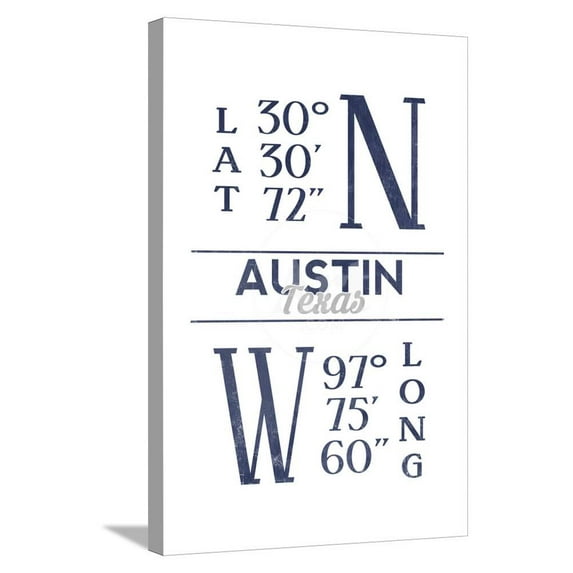 Austin, Texas Latitude and Longitude Blue, Stretched Canvas Wall Art by Lantern Press Sold by ArtCom