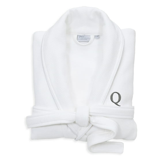 Authentic Hotel and Spa White Unisex Turkish Cotton Waffle Weave Terry Bath Robe with Grey Block Monogram Q S/M