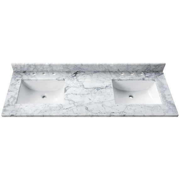 11 out of 5 Stars. 1 reviewsShipping, arrives in 3+ daysCamilla 61 in Cultured Marble Center Mount Rectangle Double Bowl Vanity Top with Backsplash, Solid White $840.09 Was $1,023.75