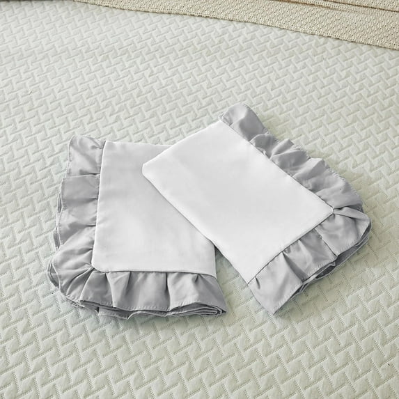 Hero image 0 of Ayanshi Bedding Dual Tone Ruffle Pillow Shams Standard King Size Set of 2, 20X36 - Ruffled Design Pillow Cases Soft & Smooth - Luxurious Pillow Covers 20X36 - (White-Silver Grey), 0 of 7