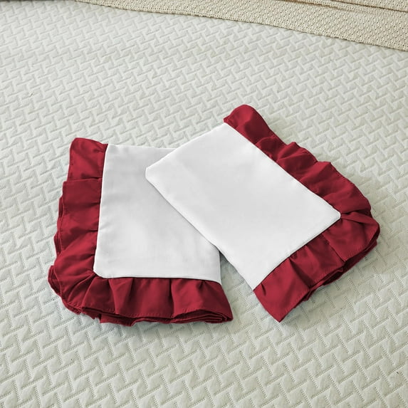 Hero image 0 of Ayanshi Bedding Dual Tone Ruffle Pillow Shams Standard King Size Set of 2, 20X36 - Ruffled Design Pillow Cases Soft & Smooth - Luxurious Pillow Covers 20X36 - (White-Burgundy), 0 of 7