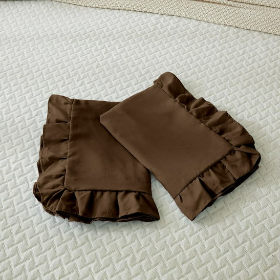 Hero image 0 of Ayanshi Bedding Ruffle Pillow Shams Standard King Size Set of 2, 20X36 -Ruffled Fringe Design Pillow Cases Soft & Smooth - Unique Collection Pillow Covers 20X36 - Brown, 0 of 7