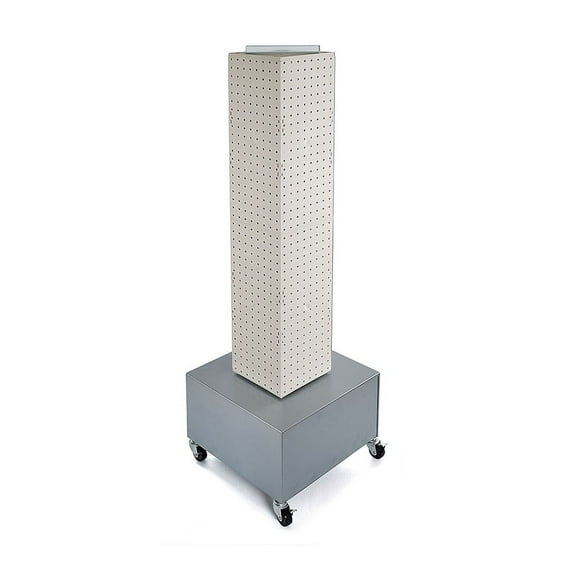 Hero image 0 of Azar Displays 703386-WHT White Four-Sided Pegboard Floor Display on Wheeled Metal Base. Spinner Rack Tower. Panel Size: 8"W x 40"H, 0 of 4