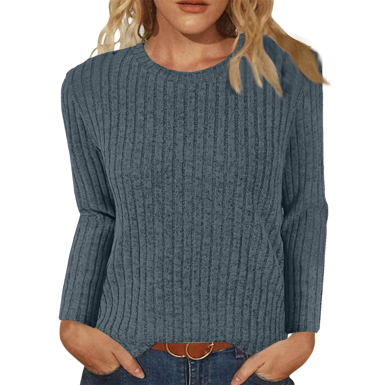 BDPORKAS Knit Tops for Women Casual Long Sleeve Cotton Shirts Round Neck Fall Trendy Pullover Tunic Tops Dressy Blouses Dark Blue XL