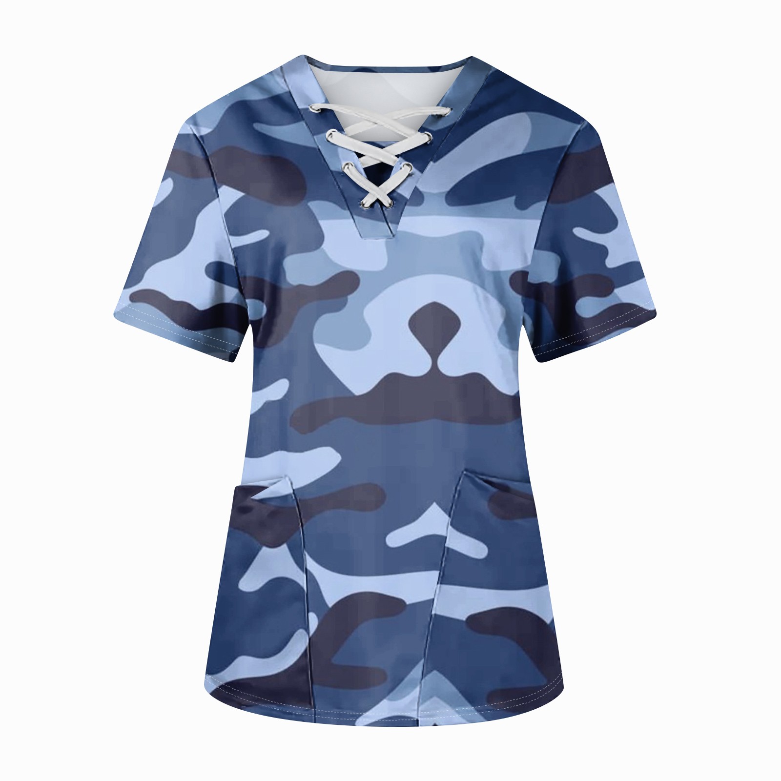 Hero image 0 of BDPORKAS Print Scrub Tops Women Cool Breathable Fabric Working Nurse Uniforms Cross V Neck Graphic Camo Print Easy Care Medical Scrubs Workwear with Pockets, 0 of 3