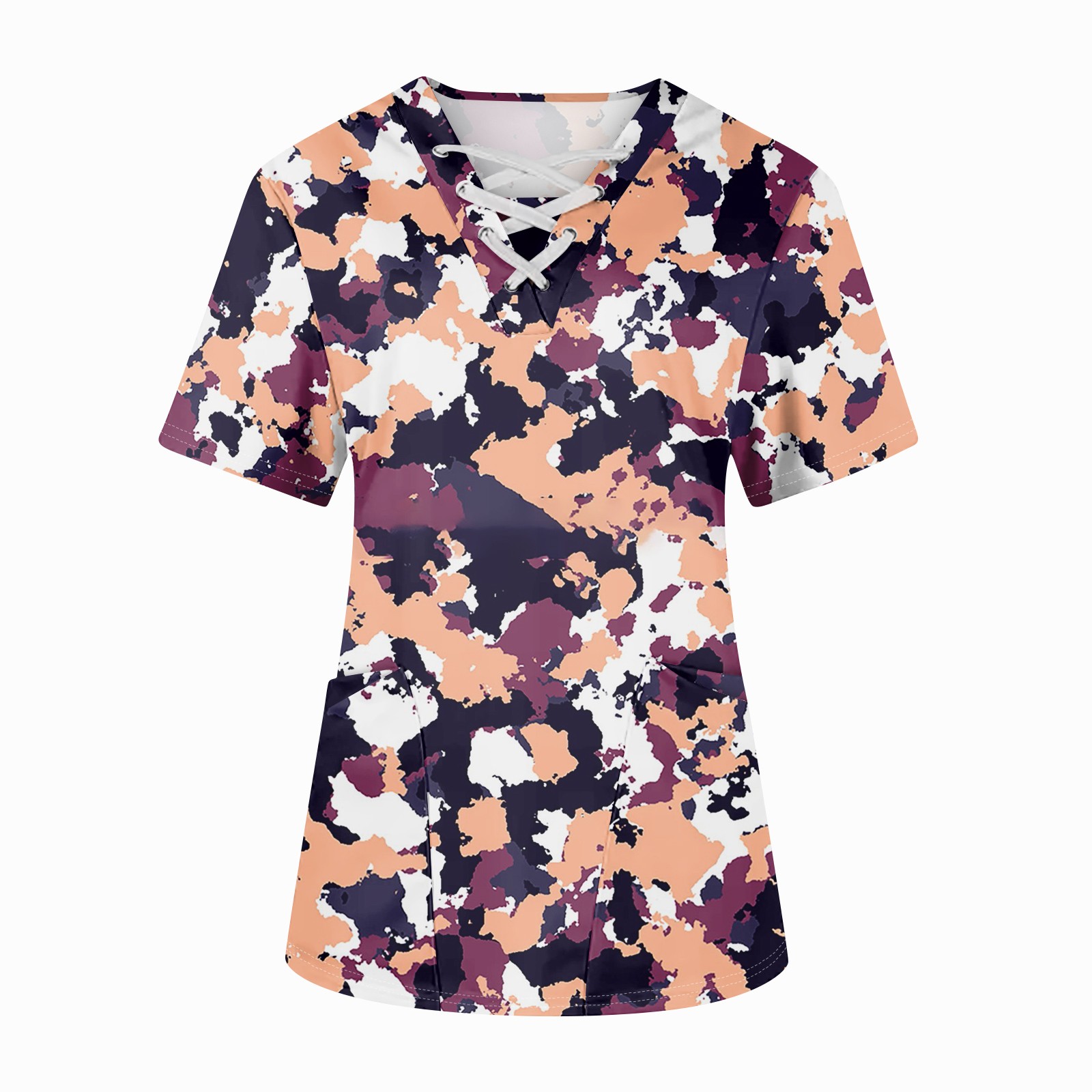 Hero image 0 of BDPORKAS Print Scrub Tops Women Cool Breathable Fabric Working Nurse Uniforms Cross V Neck Graphic Camo Print Easy Care Medical Scrubs Workwear with Pockets, 0 of 3