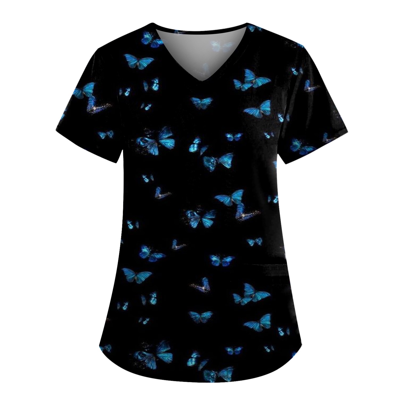 Hero image 0 of BDPORKAS Scrub Tops Women Print Cute Butterfly Print Petite Comfort Fit Short Sleeve V Neck Blouse T-Shirts Nursing Uniforms Shirts Women Medical Scrubs for Women Workwear, 0 of 4