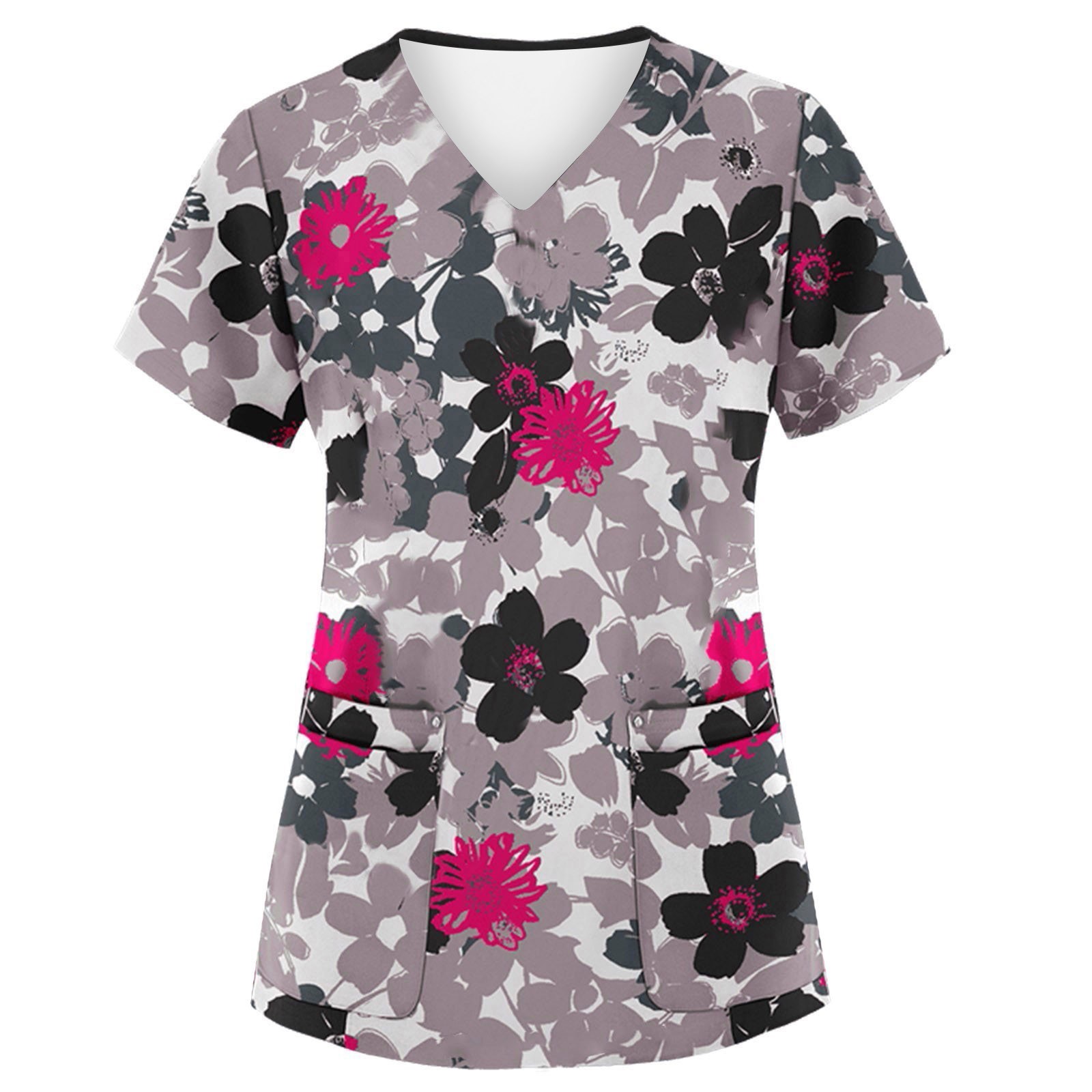 Hero image 0 of BDPORKAS Scrub Tops Women Print Cute Floral Print Petite Comfort Fit Short Sleeve V Neck Blouse T-Shirts Nurse Uniforms for Women 2024 Medical Uniforms & Scrubs Workwear, 0 of 3