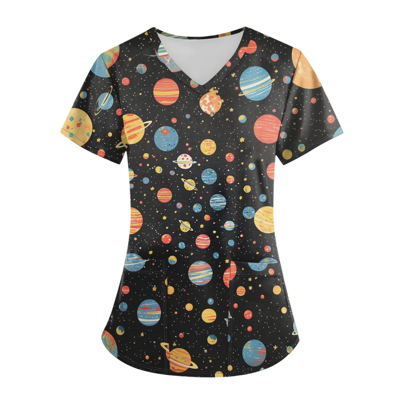 Hero image 0 of BDPORKAS Scrubs for Women Cute Print Working Tops Lightweight V Neck Short Sleeve Comfy Nursing Blouse T-Shirt with Pocket, 0 of 6