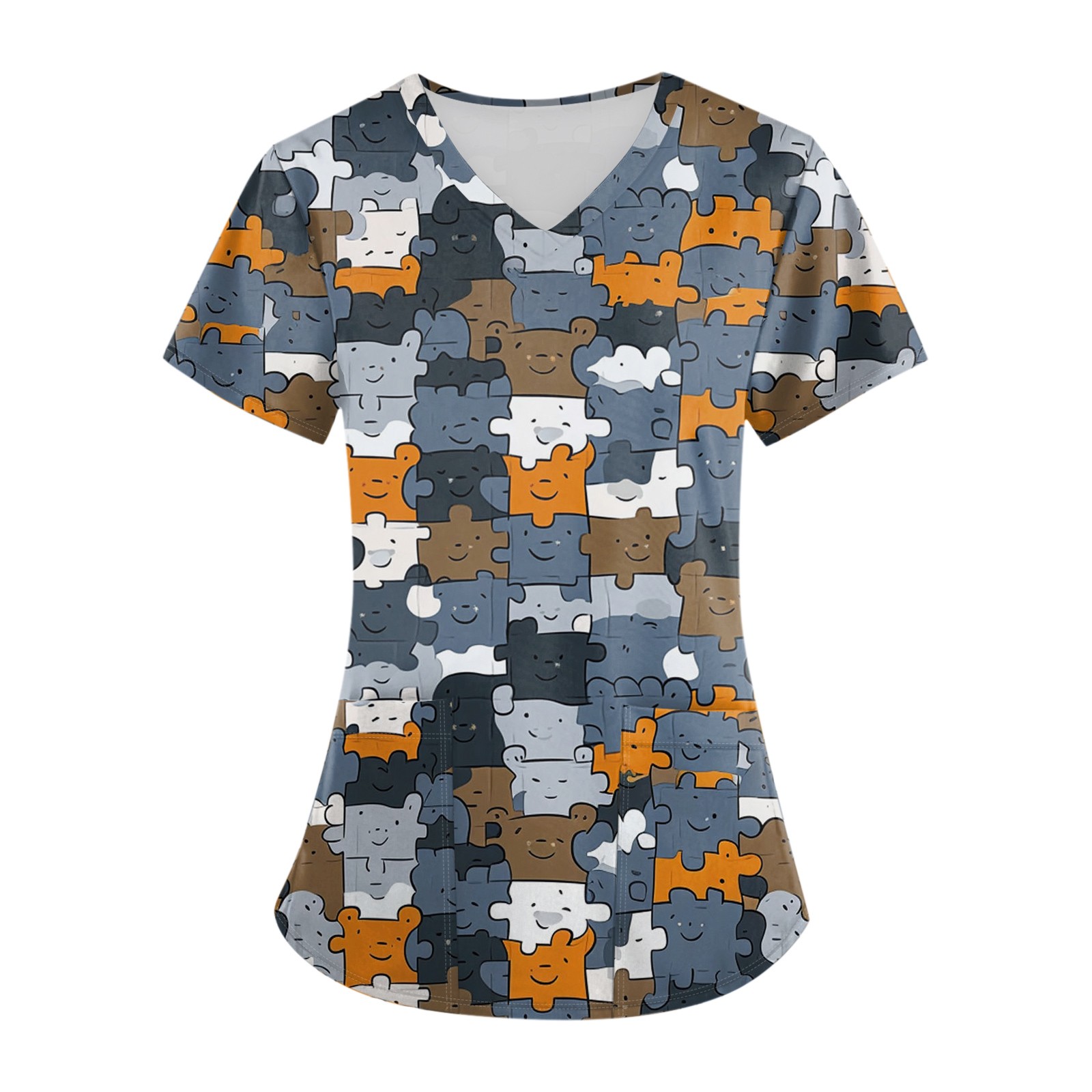 Hero image 0 of BDPORKAS Scrubs for Women Cute Print Working Tops Lightweight V Neck Short Sleeve Comfy Nursing Blouse T-Shirt with Pocket, 0 of 6