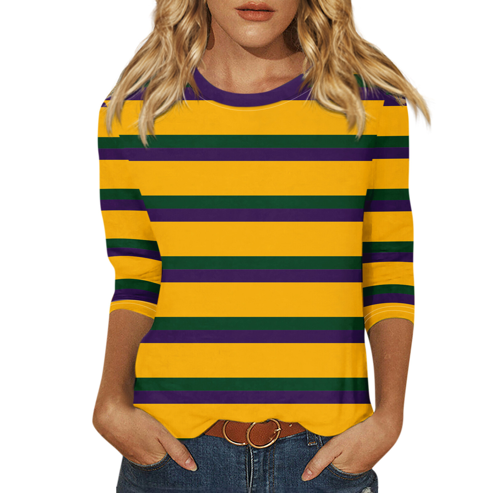 Hero image 0 of BDPORKAS Women's Funny Mardi Gras Shirt 3/4 Sleeve Mardi Gras Shirts Glitter Mask Print Graphic Tees Three Quarter Sleeve Carnival Top T Shirt, 0 of 5