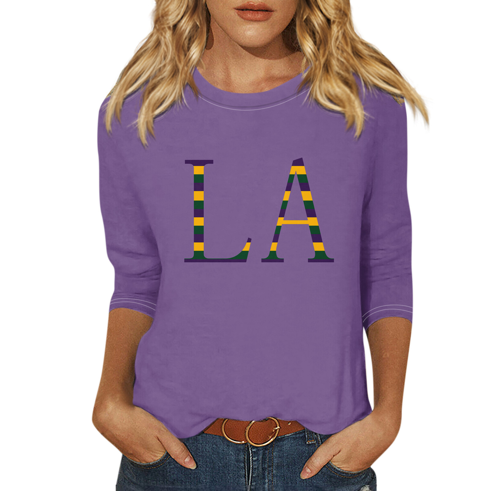 Hero image 0 of BDPORKAS Women's Mardi Gras Shirt Mardi Gras Tops for Women Graphic Mask Printed 3/4 Sleeve Carnival Themed Costumes Party Shirts, 0 of 5