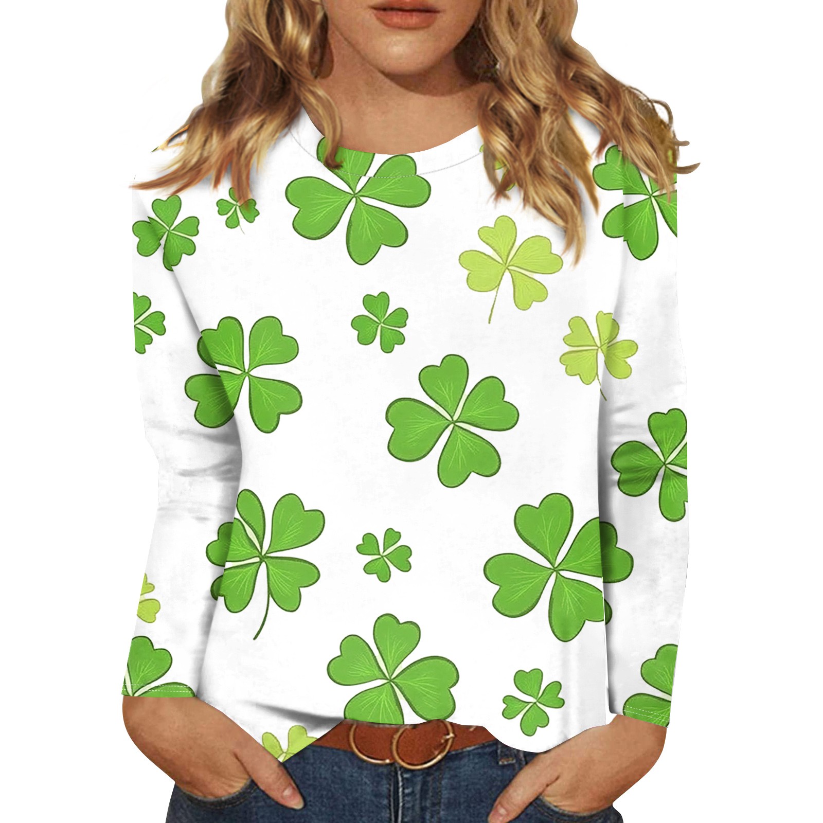 BDPORKAS Women's St Patrick's Day T-Shirt Lucky Irish Shamrock Long Sleeve Paddy's Day Graphic Tees Tops