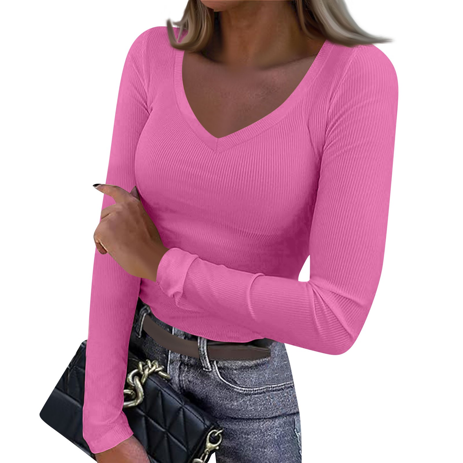 Hero image 0 of BDPORKAS Womens Long Sleeve Stretch Crewneck Ribbed T-Shirt Fitted Casual Basic Tops Womens Long Sleeve Crewneck Ribbed Tops Fitted Stretch Casual Basic T Shirts, 0 of 5
