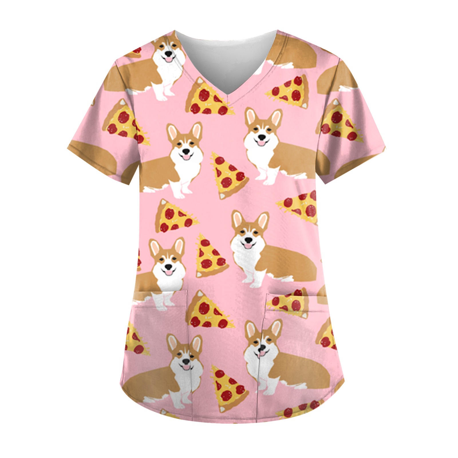 BDPORKAS Womens Scrub Tops Cute Animal Print Stretchy Breathable Short Sleeve V Neck Blouse Tee Top Print Nursing Uniforms for Women Medical Scrubs for Women Workwear