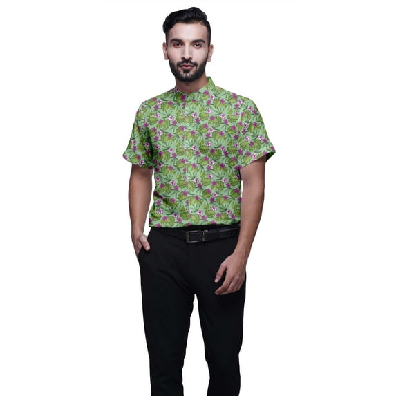 Hero image 0 of BESTMAN Short Sleeve Mandarin Collar Shirts For Men Cotton Button Down Shirt, 0 of 1