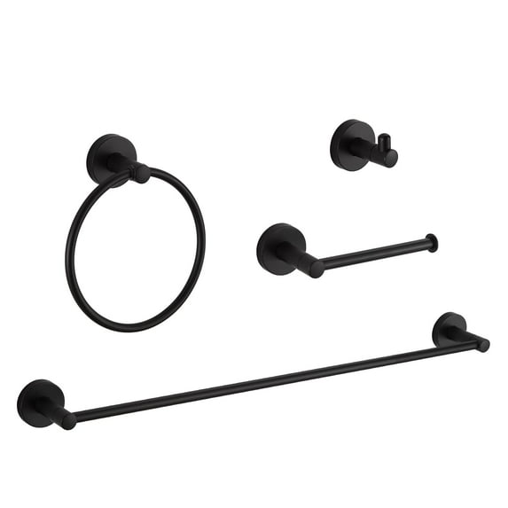 - Comprehensive Set: This 4-piece kit includes a 24-inch towel bar, a towel ring, a toilet paper holder, and robe hooks, providing a complete solution for daily bathroom organization.
